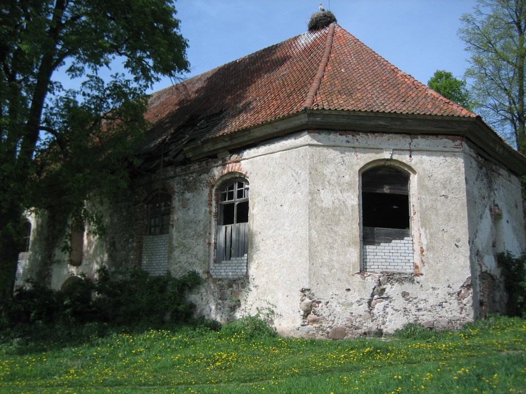 Dieser kleine Teich, von dem aus der Blick in eine weite, größtenteils brachliegende Landschaft fällt, liegt im Südwesten der Stadt Insterburg (russ. Tschernjachowsk) im russischen Teil des früheren Ostpreußen. Ganz in der Nähe, an einer vorbeiführenden Landstraße, befindet sich ein verfallenes, nicht mehr genutztes Gebäude, in dem kaum jemand eine frühere Kirche erkennen würde. Um diese unscheinbare Ruine rankt sich eine interessante Geschichte, die vor langer Zeit begann.