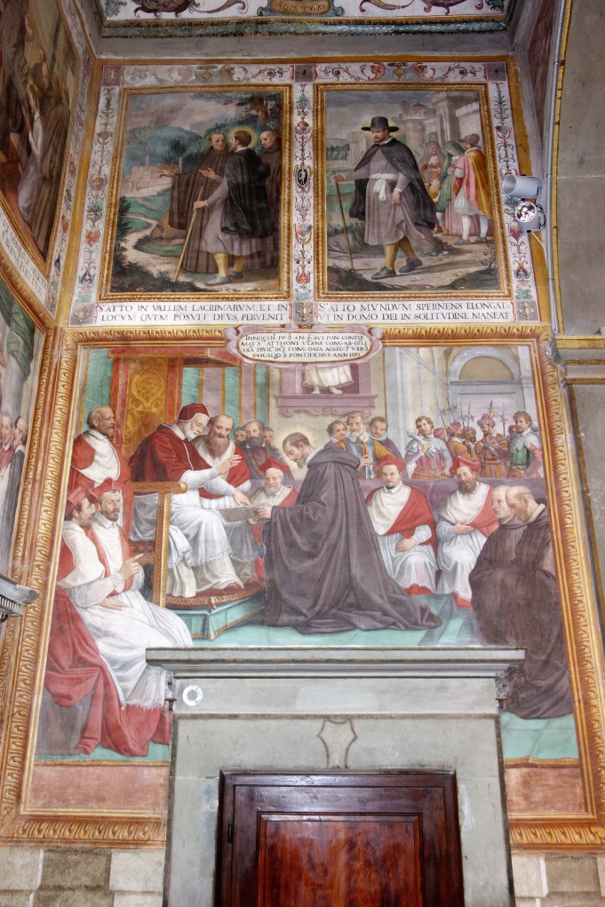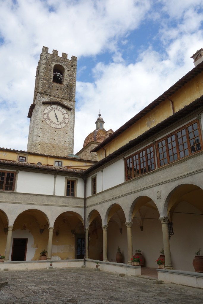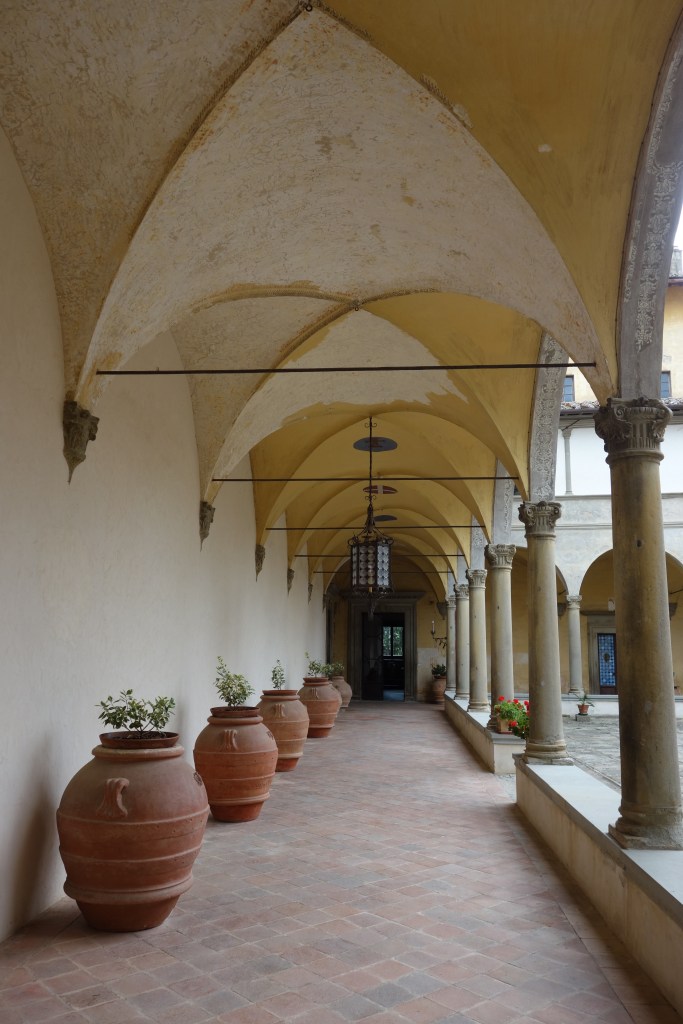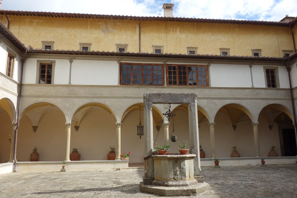 Völlige Abgeschiedenheit umfängt den Besucher im Innenhof des Klosters, in dessen Mitte sich ein Ziehbrunnen befindet. Umgeben vom Kreuzgang im Stil der italienischen Renaissance stellt dieser Bereich mit seiner Schlichtheit einen Kontrast zu den reich dekorierten Innenräumen dar. Hier in der Klausur, abgeschlossen vom Rest der Welt, konnten und können die Patres der Vallombrosaner „Dem Treiben der Welt entsagen“, wie es eine Passage der Benediktsregel besagt.