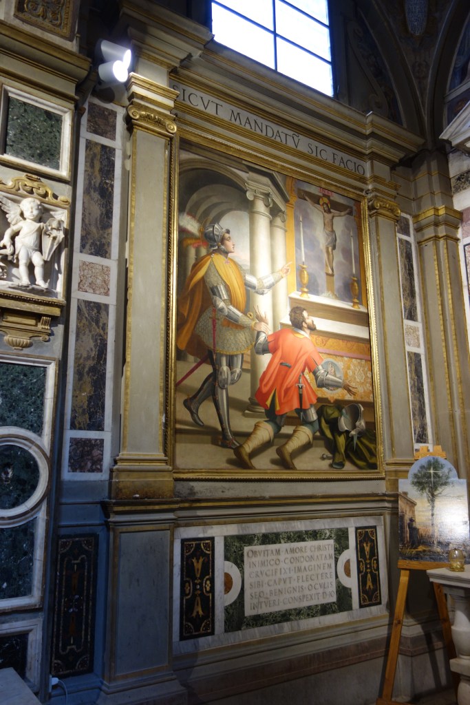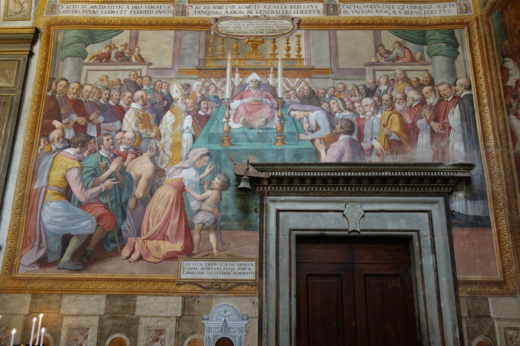 Das Leben des Heiligen Atto, dem zusammen mit dem Heiligen Sebastian die rechte Kapelle gewidmet ist, wird in mehreren Fresken des Querschiffs illustriert. Atto wurde später Bischof von Pistoia. Eines der abgebildeten Fresken zeigt die Aufbahrung seines Leichnams in der dortigen Kathedrale, das andere ist eine Darstellung eines Treffens zwischen ihm und Papst Innozenz II.