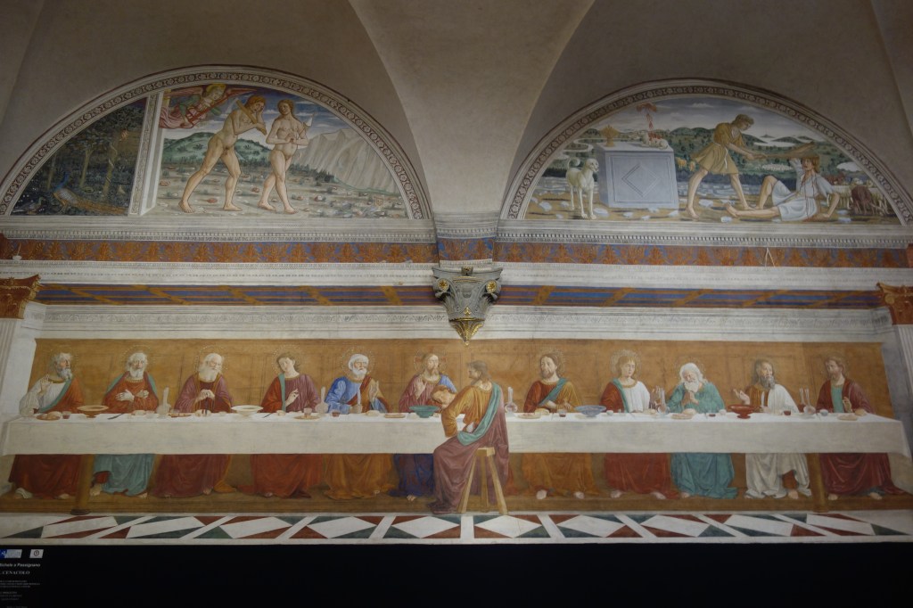 Auch im Refektorium der Abtei schmücken Fresken mit Heiligenbildnissen die Wände. Künstlerischer Höhepunkt ist ein Gemälde des letzten Abendmahls von Domenica Ghirlandaio aus dem Jahr 1476. Die zwei Lünetten darüber, zwei Werke von Bernardo Rosselini, sind Darstellungen der Vertreibung aus dem Paradies und des Mordes von Kain an seinem Bruder Abel.