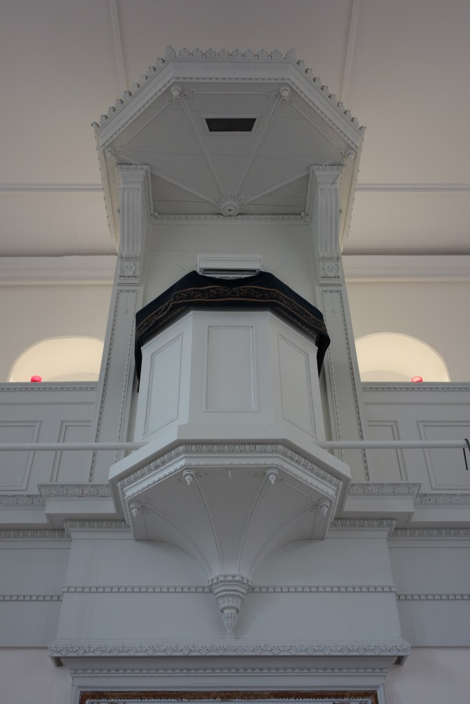 Diese Inschrift über dem Portal der Kirche in Gielde ist Programm. Der Bibelvers ist unter einem spitzen Giebel an der Fassade des eingezogenen Turms angebracht, der die westliche Fassade leicht überragt. Das Gotteshaus als Ort der Verkündigung des Wortes, als „Lehranstalt“ für den Kirchgänger. So dachte man in der Erbauungszeit der Kirche, im Jahr 1846. Auch die einfache Ausstattung des Innenraums spricht für diese Sichtweise. Eine flache Decke, eine umlaufende Empore auf dorischen Säulen, kaum Dekor – der Blick des Gottesdienstbesuchers richtet sich unweigerlich auf den Kanzelaltar. Das Altargemälde – dargestellt ist die Kreuzabnahme – und der auf dem Behang abgebildete Weinstock sind die einzigen bildlichen Darstellungen, die an Jesus Christus erinnern.