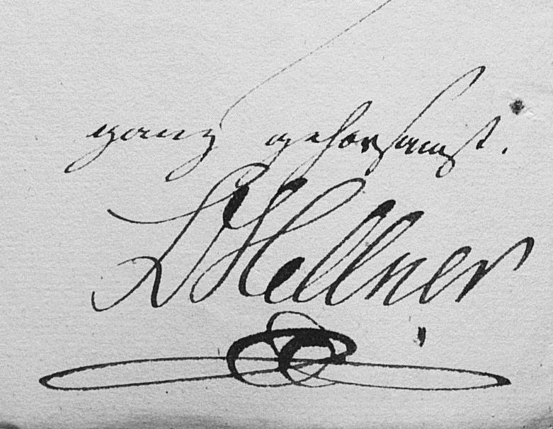 Im Niedersächsischen Staatsarchiv, im Landeskirchlichen Archiv in Hannover und in vielen Pfarrarchiven niedersächsischer Kirchengemeinden lagert umfangreiches Aktenmaterial mit der Korrespondenz Hellners. Unzählige Schreiben an Behörden und Gemeinden, Kostenvoranschläge und Baupläne zeugen von dem gewaltigen Arbeitspensum des Baumeisters, von dem leider keine Abbildung existiert. Stellvertretend sei deshalb hier der Schriftzug abgebildet, mit dem er seine Briefe signierte.