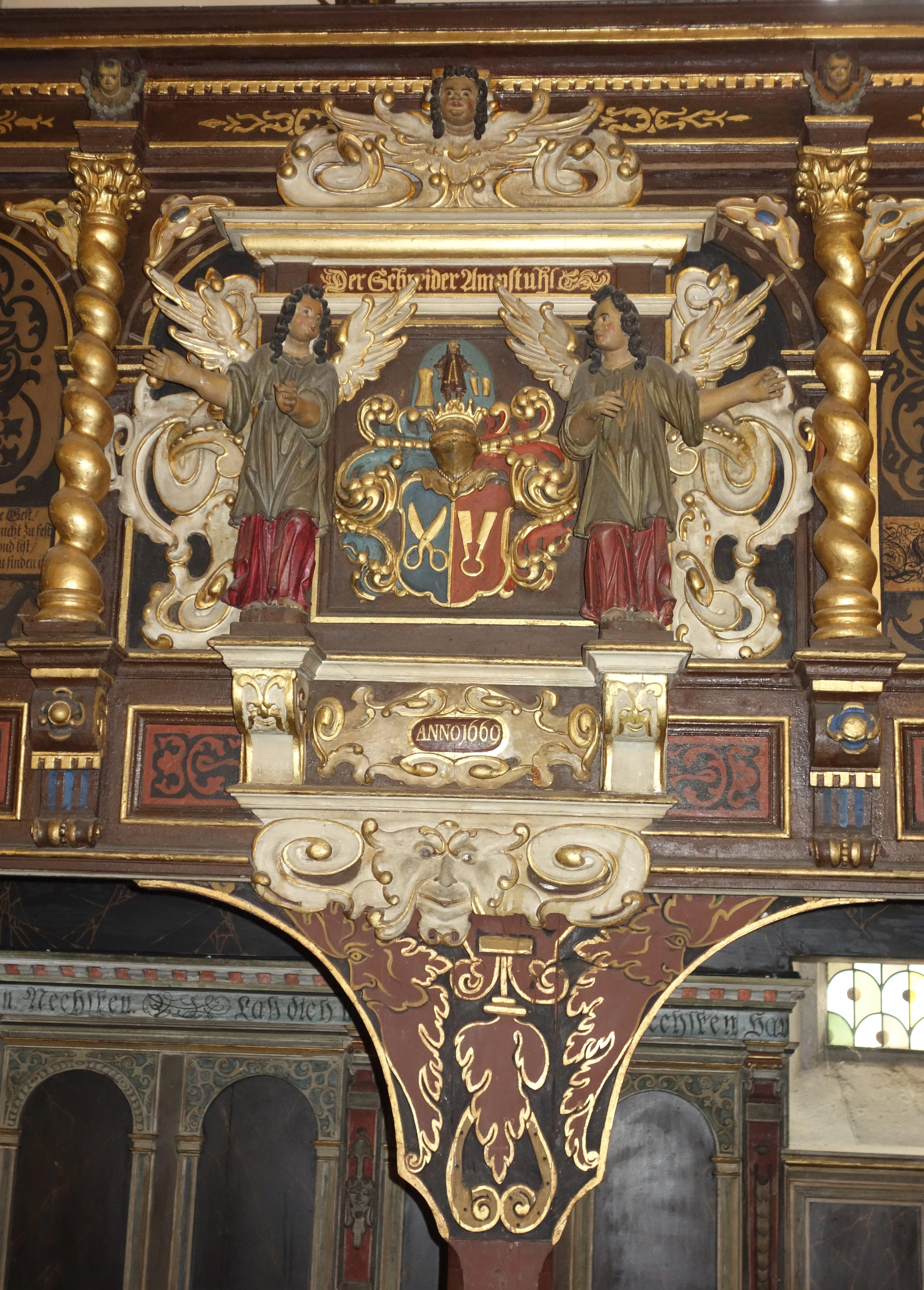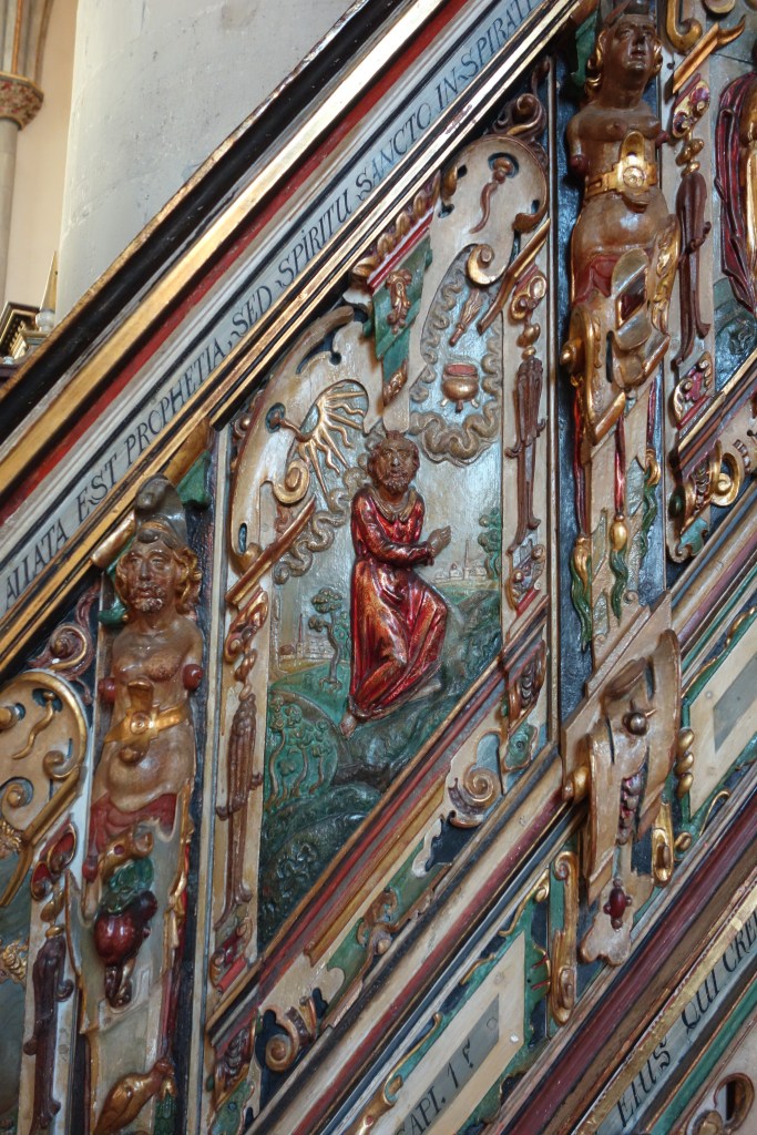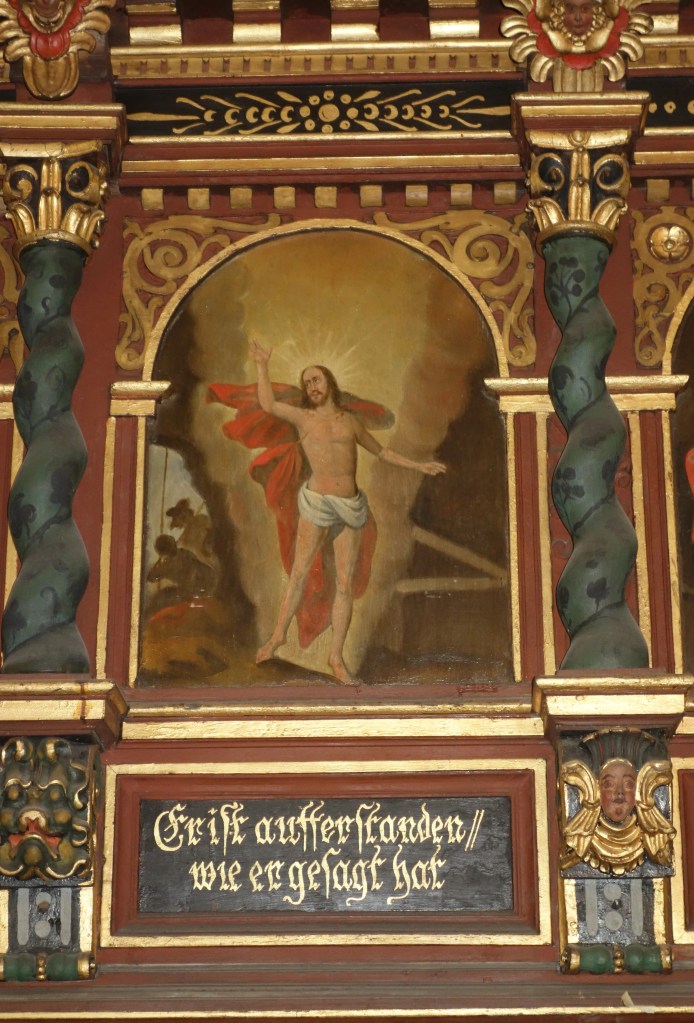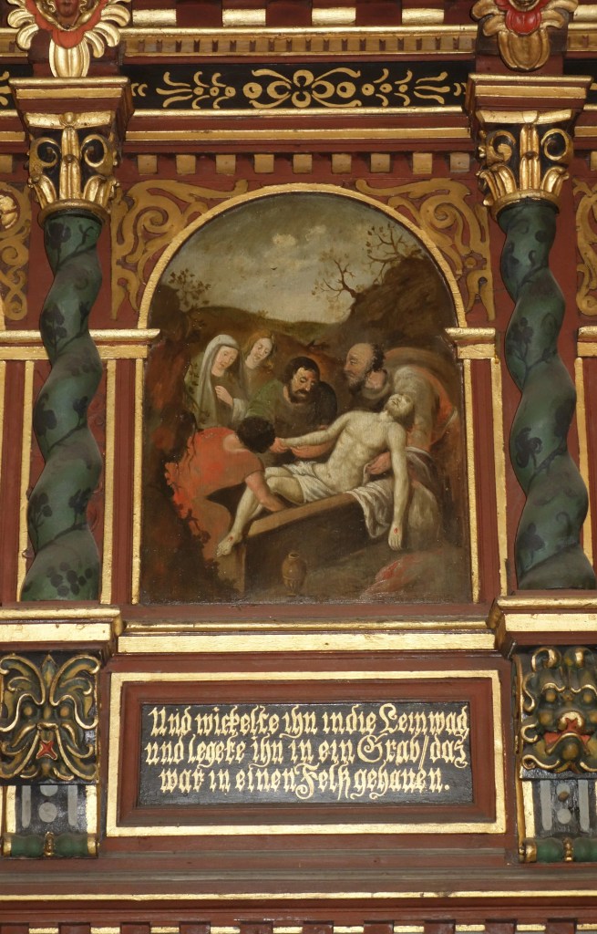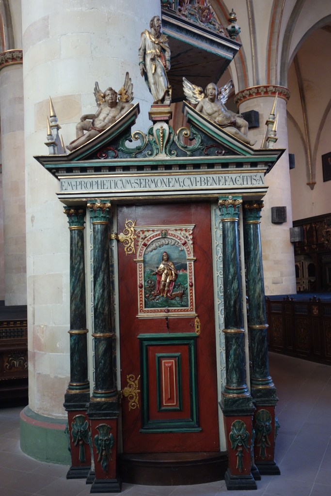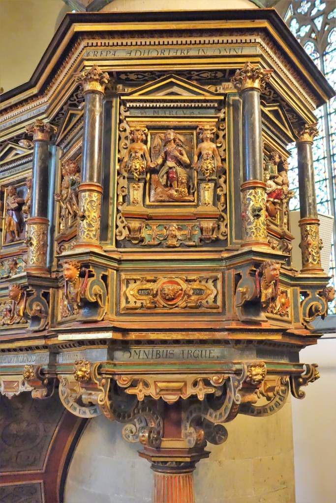 Die Verbindung von Bild und Text, die auch die Gestaltung der Kanzel und der Emporen prägt, setzt sich auch hier fort. Die stilreine Ausstattung aus der Zeit der Renaissance entfaltet vor dem Besucher ein vielschichtiges illustriertes Evangelium und bietet ihm ein besonderes Raumerlebnis in der gotischen Kirche.