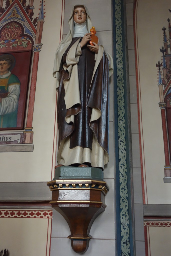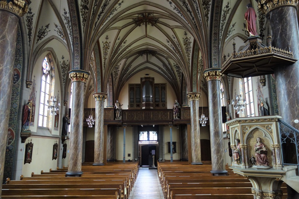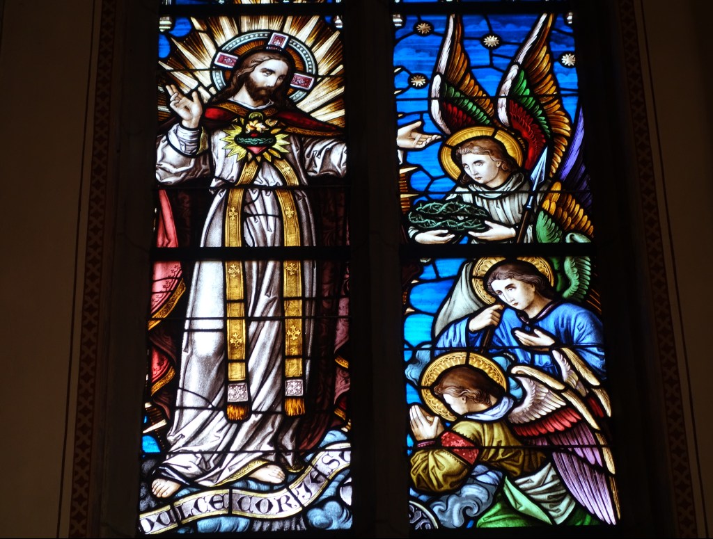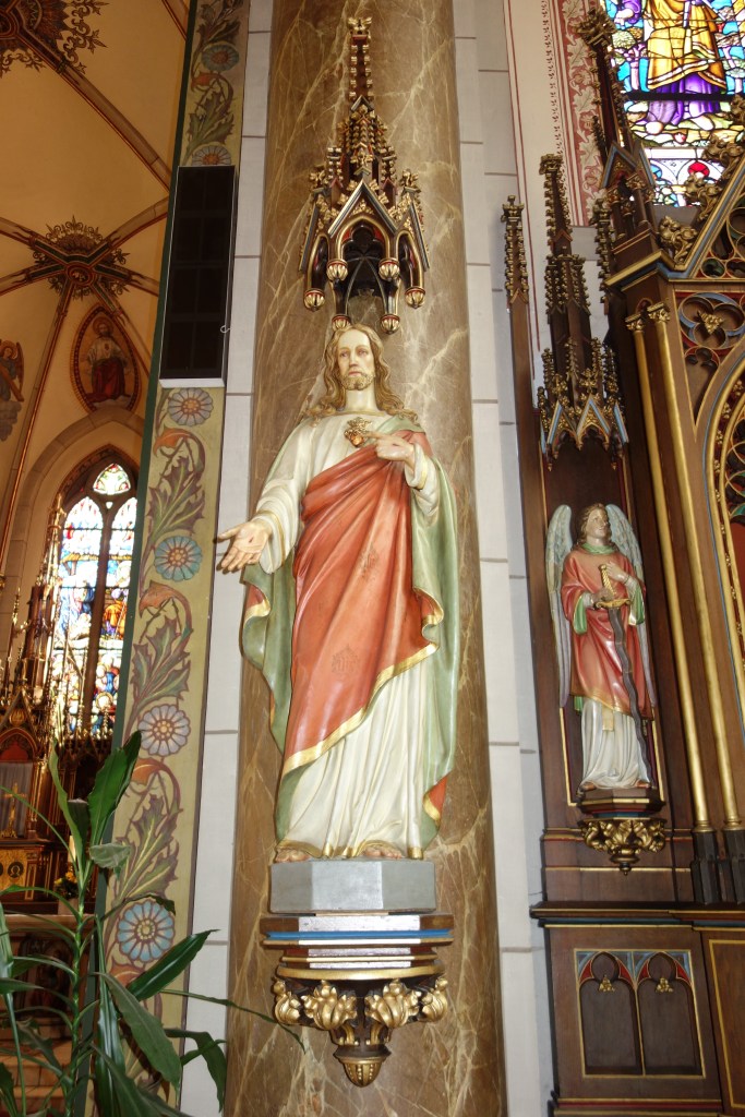 Während die alte Kirche unter dem Patrozinium des Erzengels Michael und Johannes‘ des Täufers stand, wurde der Neubau einem Glaubensgeheimnis, der Verehrung des Herzens Jesu, gewidmet. Die wechselnde Namensgebung im Laufe der Kirchengeschichte des Ortes und die damit verbundenen Glaubensinhalte standen im Mittelpunkt meiner Führungen in der Herz-Jesu-Kirche im Jahr 2023.
