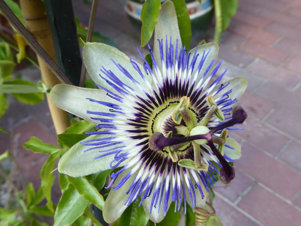 Ein ganz anders gearteter Blickfang bei den Führungen war eine im Topf gezüchtete Passionsblume, die über den Sommer hinweg regelmäßig Blüten zu Tage brachte. Die Pflanze gab Möglichkeiten zum Vergleich mit den Malereien in der Kirche. Es mag der Fantasie des Betrachters überlassen werden, inwieweit auch er in der Blüte Symbole der Passion erkennt.