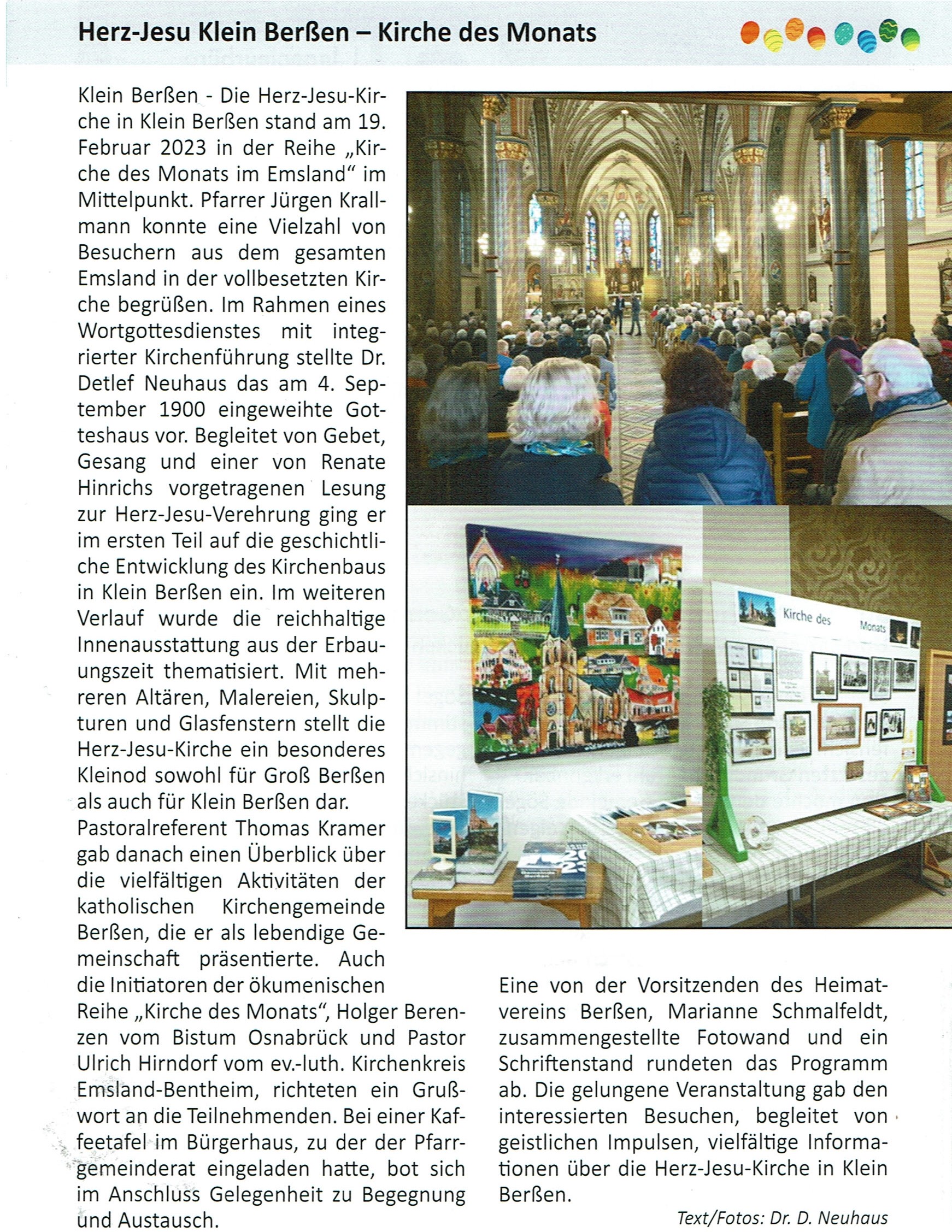 Die Monatsschrift „Informationen für Sögel und Umgebung“ (herausgegeben vom Forum Sögel e.V. und Sögel Marketing) berichtete in der vergangenen Zeit über Führungen in der Herz-Jesu-Kirche: