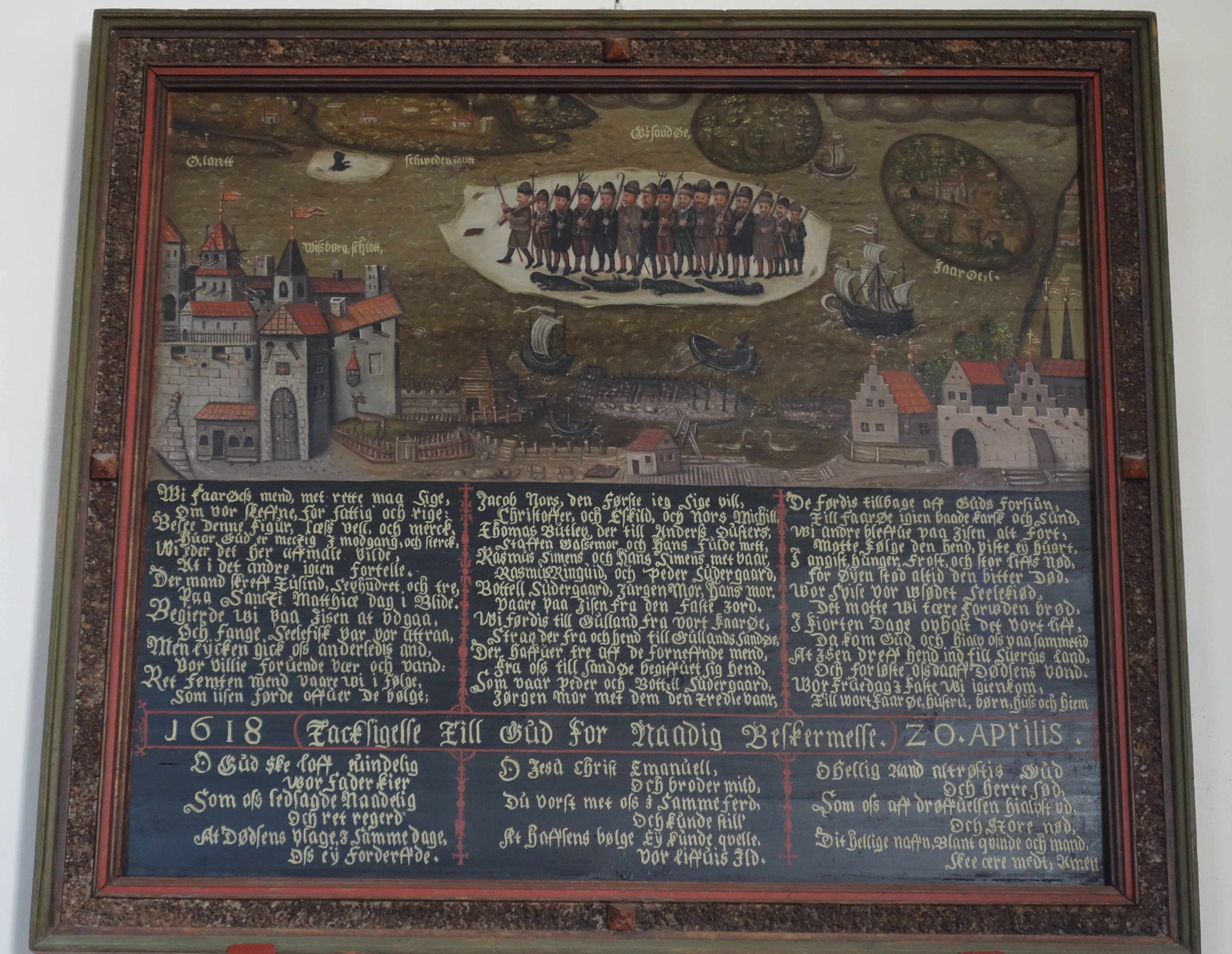 Gerade in der nachreformatorischen Zeit hinterließen viele Menschen persönliche Zeichen ihrer Dankbarkeit in den Gotteshäusern. Davon zeugen Epitaphien, Inschriften an gestifteten Ausstattungsgegenständen oder auch die vielen im Kirchenschiff aufgehängten Votivschiffe. Über ein spektakuläres Ereignis mit glücklichem Ausgang berichtet die „Große Robbentafel“ in der Kirche auf Farö, einer nördlich von Gotland gelegenen kleineren Insel.