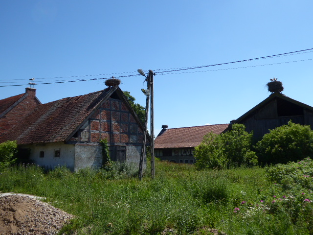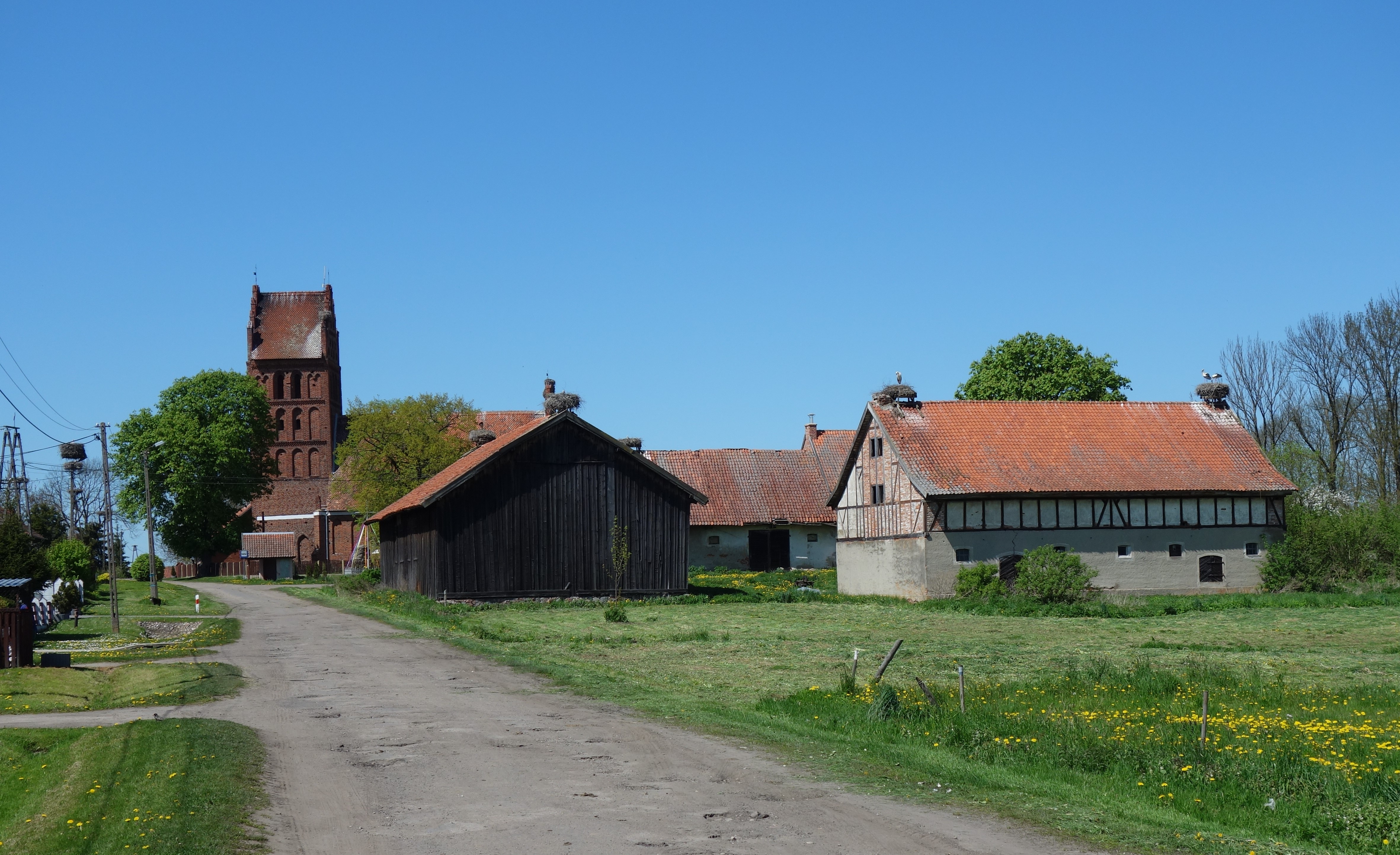 Ein Staffelgiebel mit spitzbogigen Putzblenden, unterteilt durch über Eck gestellte Wandvorlagen, die in Fialen auslaufen… Nicht diese architektonischen Merkmale sind das Besondere am Westgiebel der Kirche in Löwenstein, die im typischen Stil der Zeit des Deutschen Ordens erbaut worden ist. Es sind die Storchennester, die den Giebel krönen und das Gotteshaus auch zu einem Haus für Störche machen. Die Feuchtwiesen rund um das heute Lwowiec genannte 200-Seelen-Dorf im Norden Polens bieten den Tieren reichhaltige Nahrung.