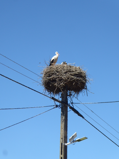 Zur Freude der Dorfbewohner und Touristen haben die Langbeiner in ihr Storchendorf zurückgefunden. In etlichen der noch vorhandenen Nestern werden Jungstörche gefüttert und werden bald ihre ersten Flugversuche unternehmen.