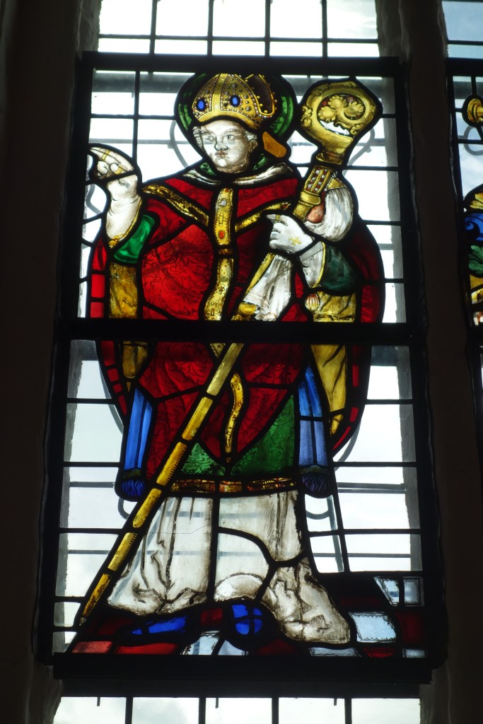 In einem weiteren Chorfenster ist der heilige Nikolaus, der Namenspatron der Kirche, mit Mitra und Bischofsstab abgebildet. Legenden erzählen vom Wirken des Bischofs als Retter in Notsituationen und Helfer in Bedrängnis. Seine Hilfsbereitschaft und Barmherzigkeit sind Werte, auf denen sich eine caritative Einrichtung wie der Nikolaihof gründet. Viele helfende Hände haben im Laufe der Jahrhunderte an diesem Ort gewirkt, haben sich um die haus- und landwirtschaftliche Versorgung der Bewohner gekümmert. Die Mehrzahl dieser Menschen bleibt ungenannt.