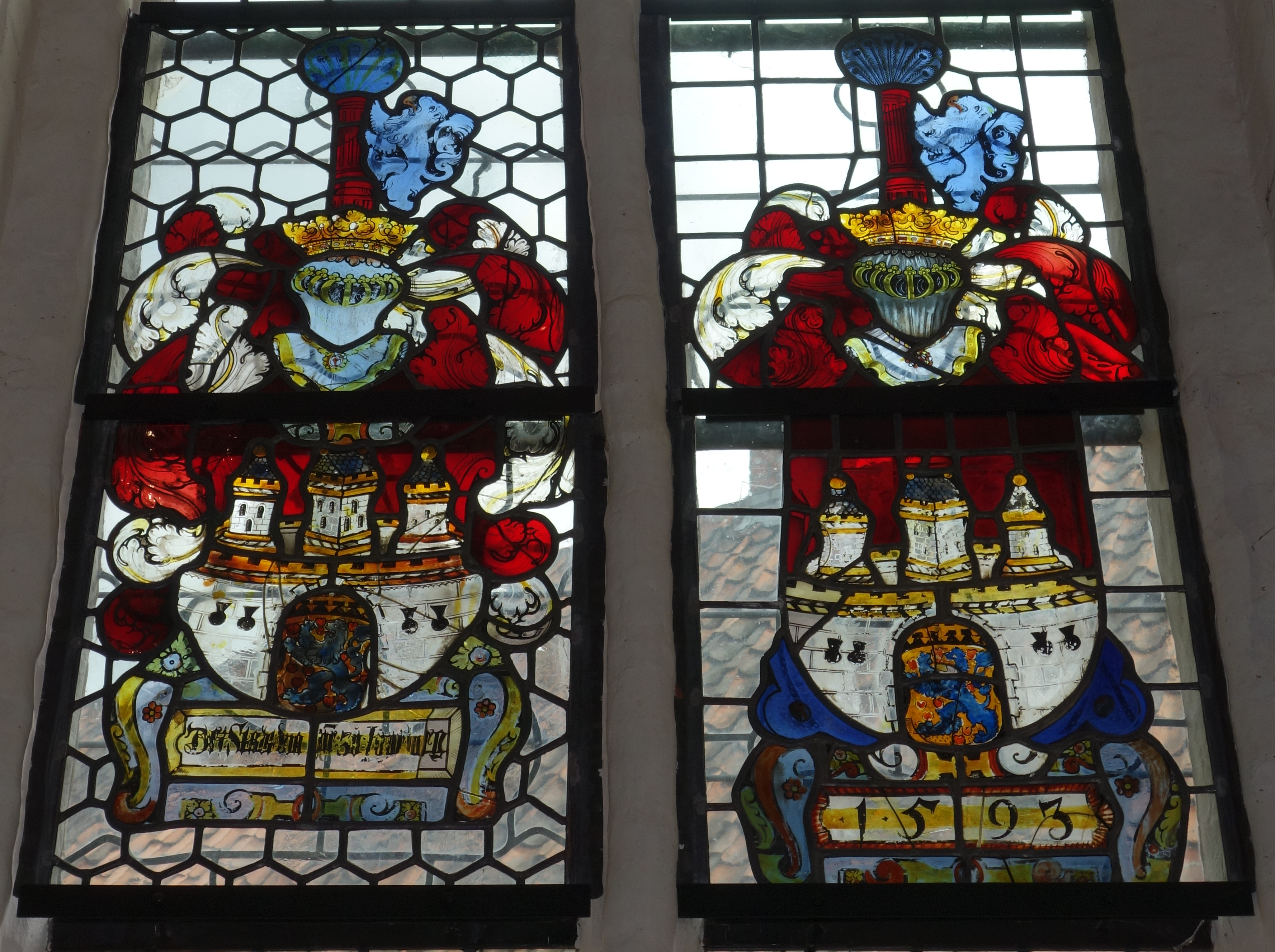 Die Stadt Lüneburg als Träger und einige „Provisoren“ als Verwalter der Einrichtung hingegen setzten sich in der Kirche Zeichen der Erinnerung. Weitere Glasmalereien zeigen das Stadtwappen, eine Burg mit drei Türmen. Eines trägt die Jahreszahl 1593. Zwei Familienwappen enthalten die Namen der Provisoren Jürgen und Leonhard Tobing und ihrer Ehefrauen. Die beiden Ratsherren aus Lüneburg waren im 16. Jahrhundert für den Nikolaihof verantwortlich.