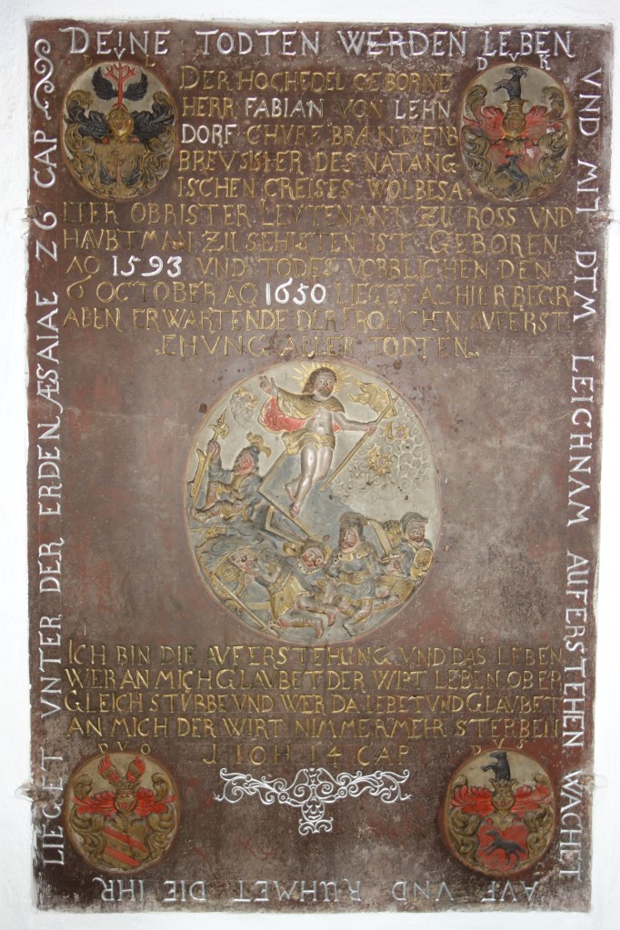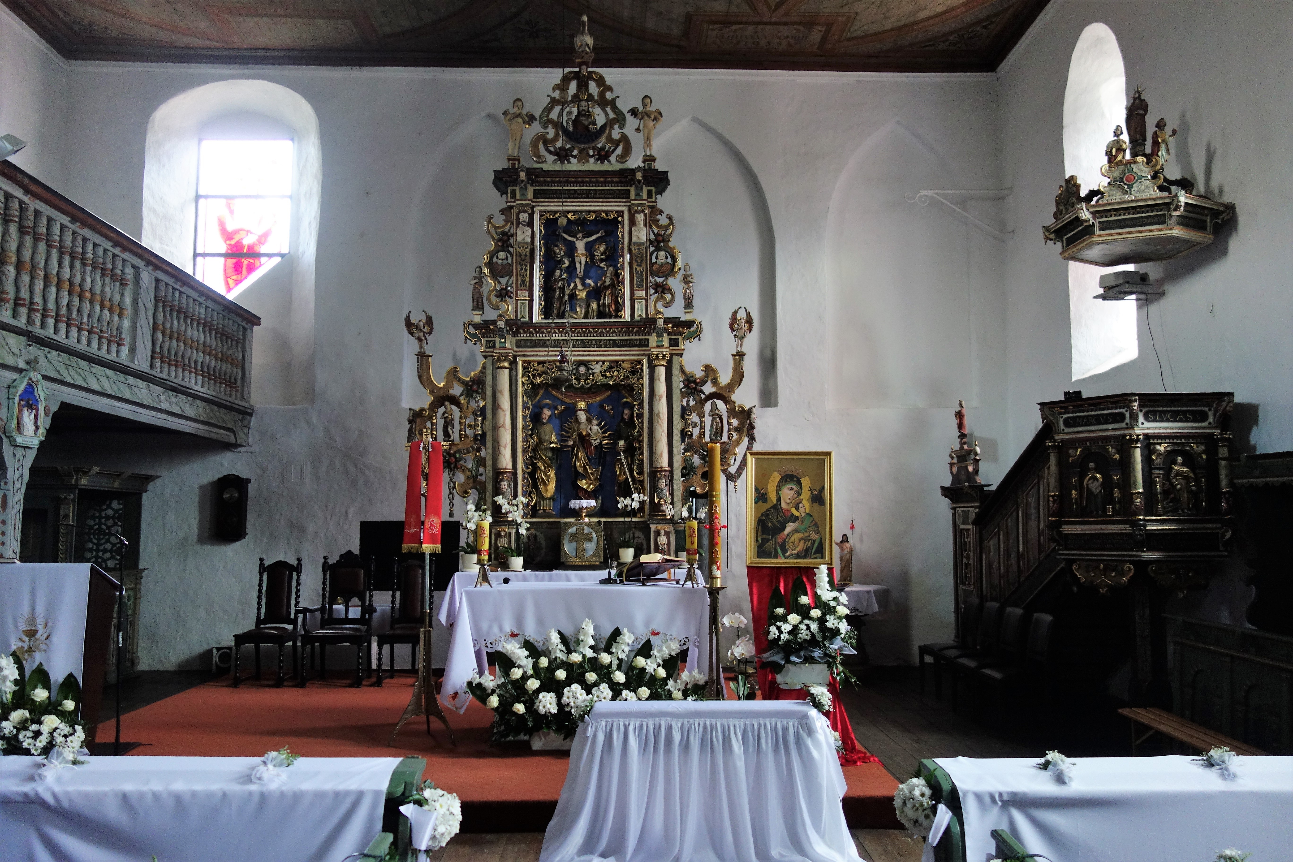 Verschiedene Objekte in der Kirche nehmen Bezug auf das Wirken von Adligen in der Gemeinde. Sie weisen auf das Standesbewusstsein der damaligen Gesellschaft hin, das auch im Kirchenraum zu Tage tritt. Der Altar als Stiftung des Fabian von Lehndorf (1593-1650) aus dem Jahr 1624 zeigt dessen Wappen. Ein Epitaph mit einer Abbildung der Auferstehung im Zentrum erinnert an diesen Spross der verzweigten ostpreußischen Adelsfamilie, der als Amtshauptmann von Seehesten in Diensten stand. Besondere Stühle und Stände zeichnen sich durch kunstvolle Schnitzarbeiten und Bemalungen aus.