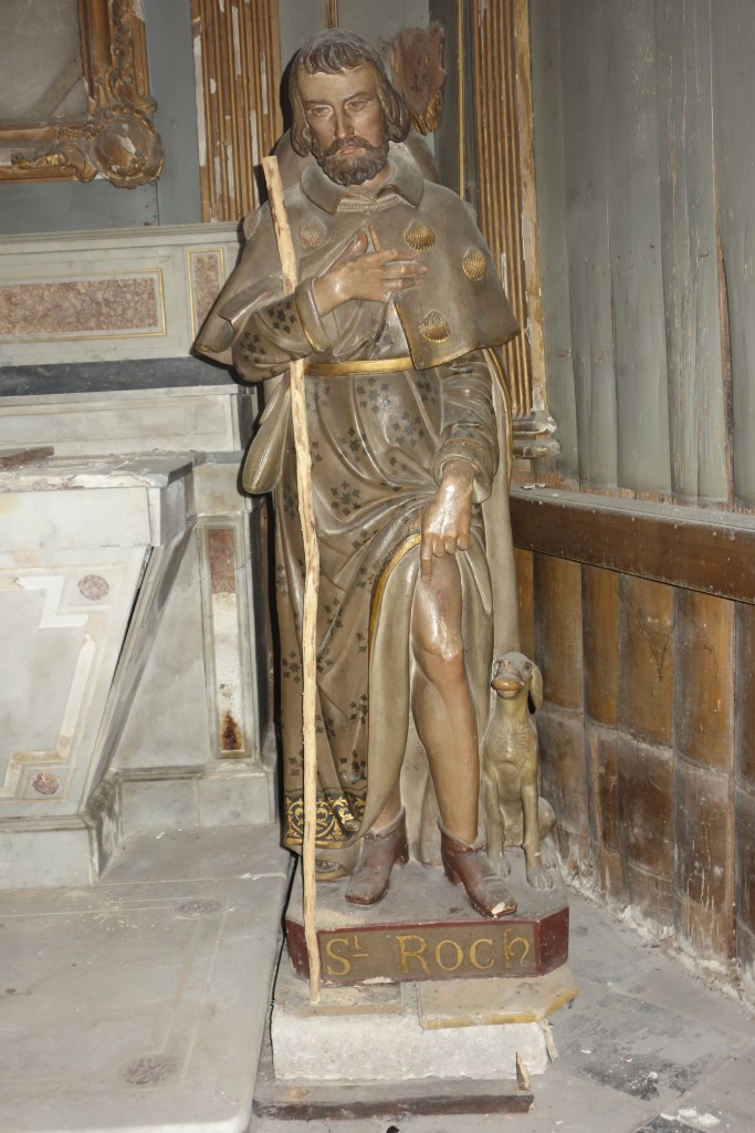 Dem Pestheiligen Rochus von Montpellier ist die Kapelle an der nordöstlichen Ecke der Kirche gewidmet. Eine hölzerne Figur zeigt ihn als Pilger, dessen Fingerzeig auf eine Pestbeule am linken Bein auf die eigene Erkrankung hinweist. Der Hund an seiner Seite soll ihn der Legende nach auf seinem Krankenlager mit Brot versorgt haben. Auch eines der beiden hochgelegenen Rundfenster nimmt dieses Motiv auf. Das andere zeigt den von Pfeilen durchbohrten Heiligen Sebastian. Auch er wurde als Helfer gegen die Pest verehrt.