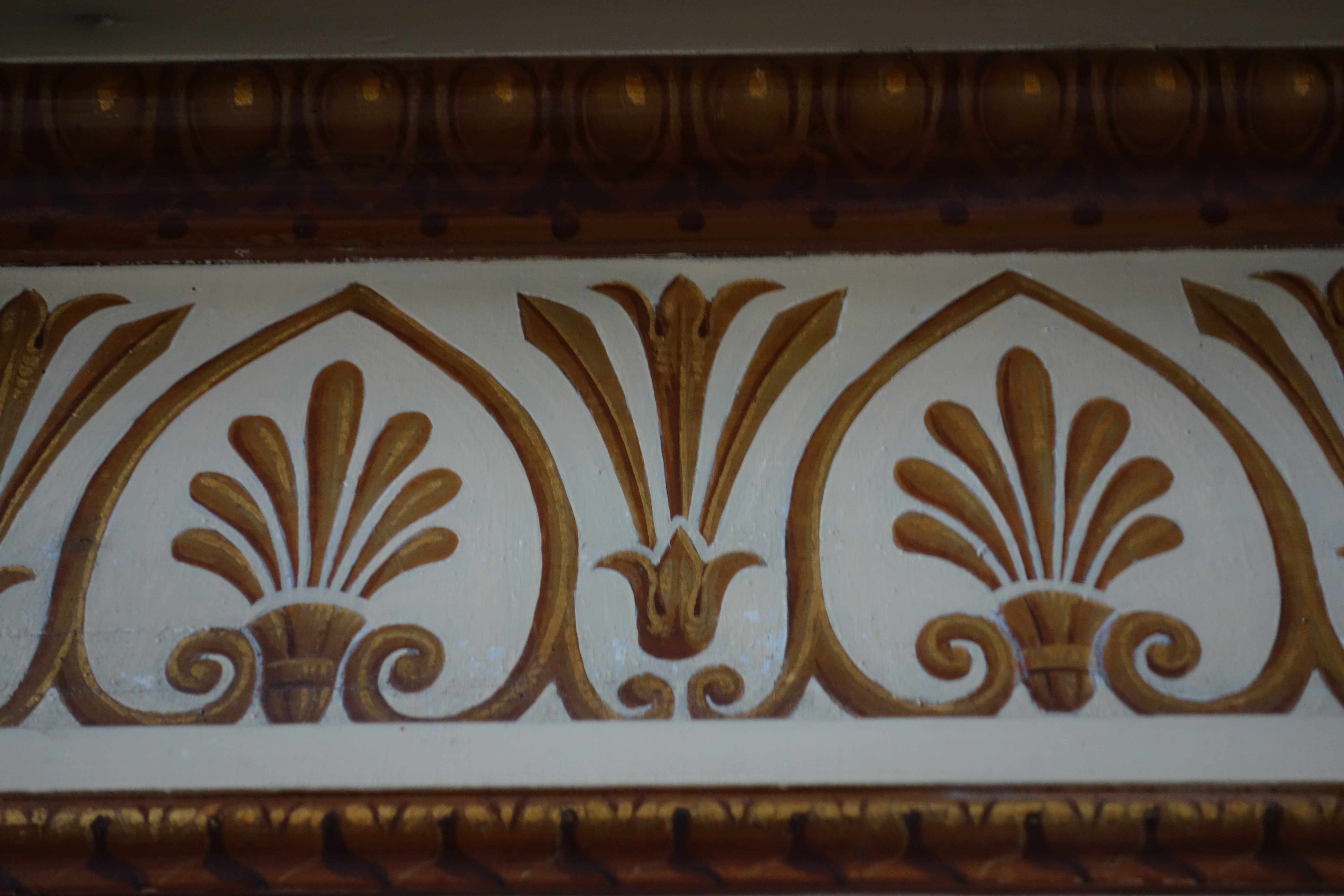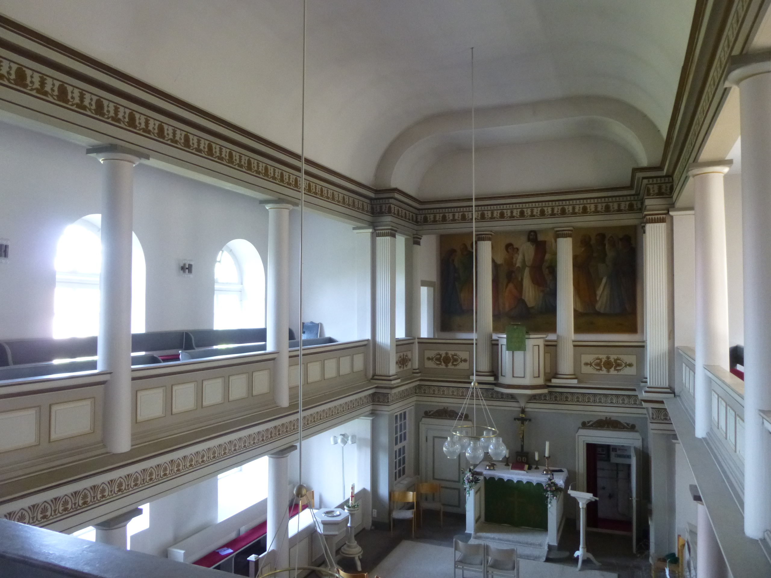 Die Symbolik der Säulen, die Ausmalung mit stilisierten Palmblättern und die auf die Verkündigung des Wortes Gottes ausgerichtete Konzeption des Innenraumes standen im Mittelpunkt einer Führung am 22. Oktober 2017 in der Eddesser Kirche.