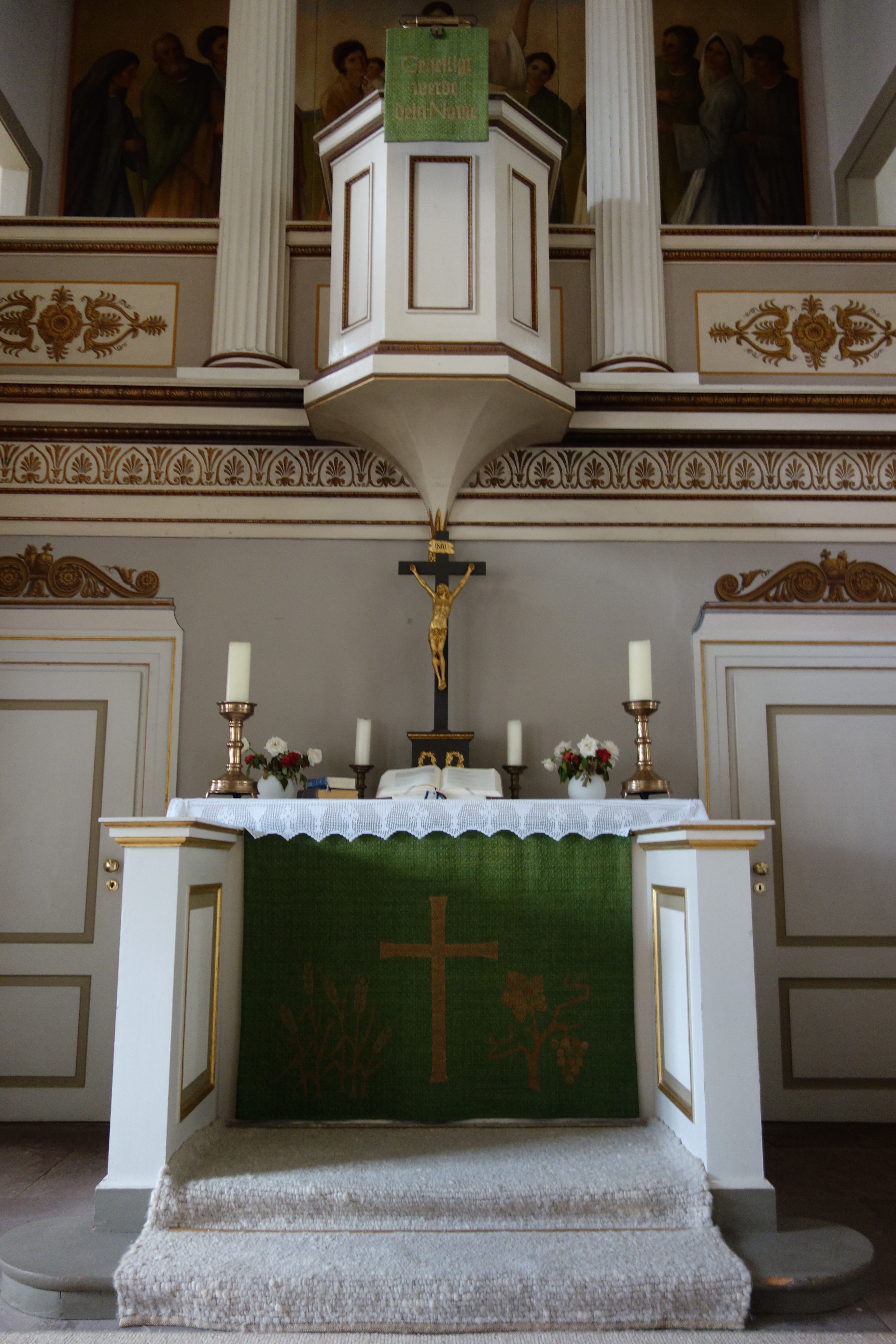 Am 27. Juli 2019 feierte die Kirchengemeinde Eddesse den 180. Jahrestag der Einweihung der Kirche. An diesem Tag standen die Baugeschichte und die Architektur der klassizistischen Kirche im Mittelpunkt meiner Führung. Im Sommer dieses Jahres wurde auch die Renovierung des Kirchturmes abgeschlossen. Dabei wurden unter anderem der Außenputz erneuert und der Pyramidenhelm mit einer neuen Schiefereindeckung versehen. Der wuchtige Turm beherbergt seit fünf Jahrhunderten die Glocke „Anna“, über die Sie hier Näheres erfahren können.