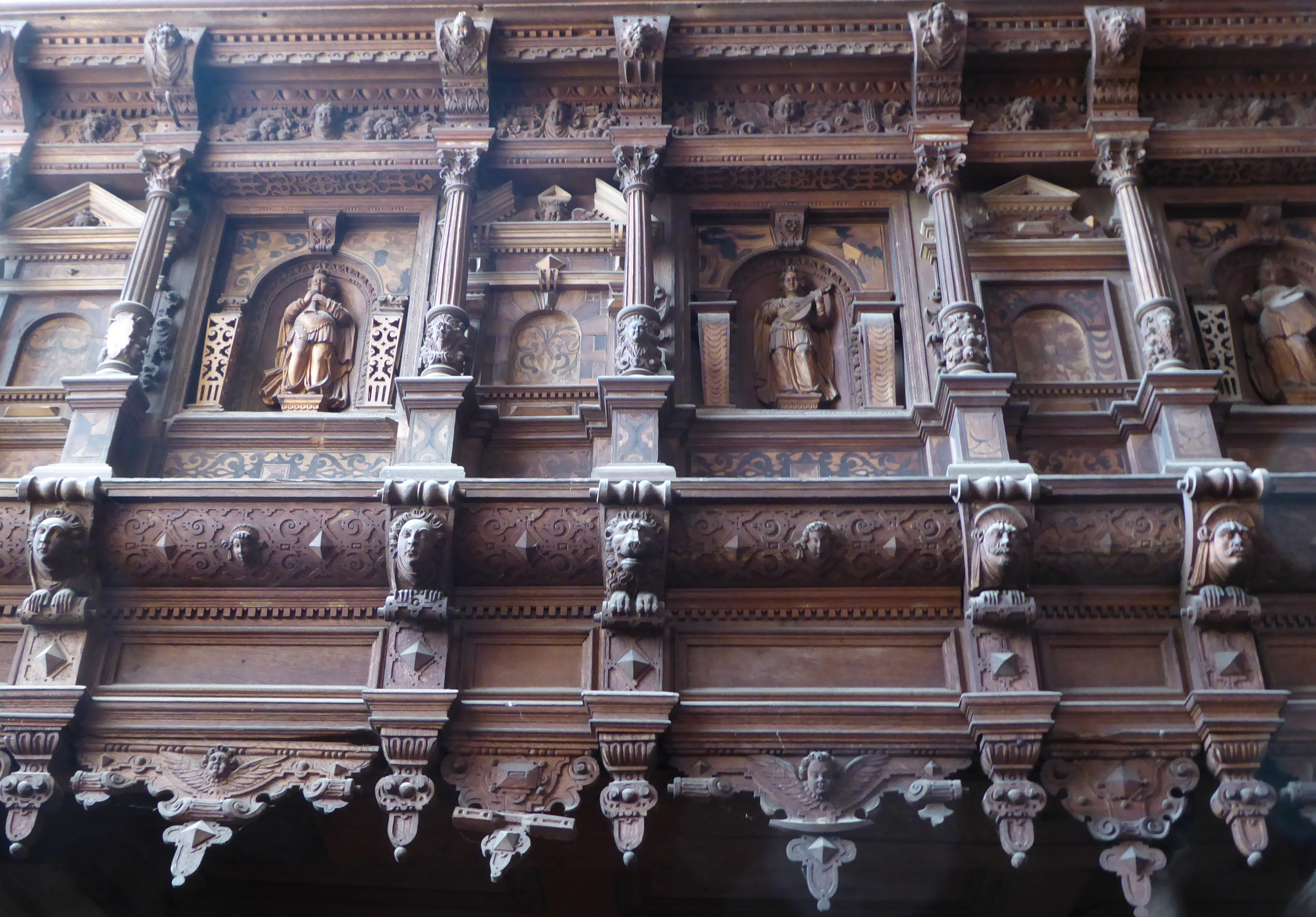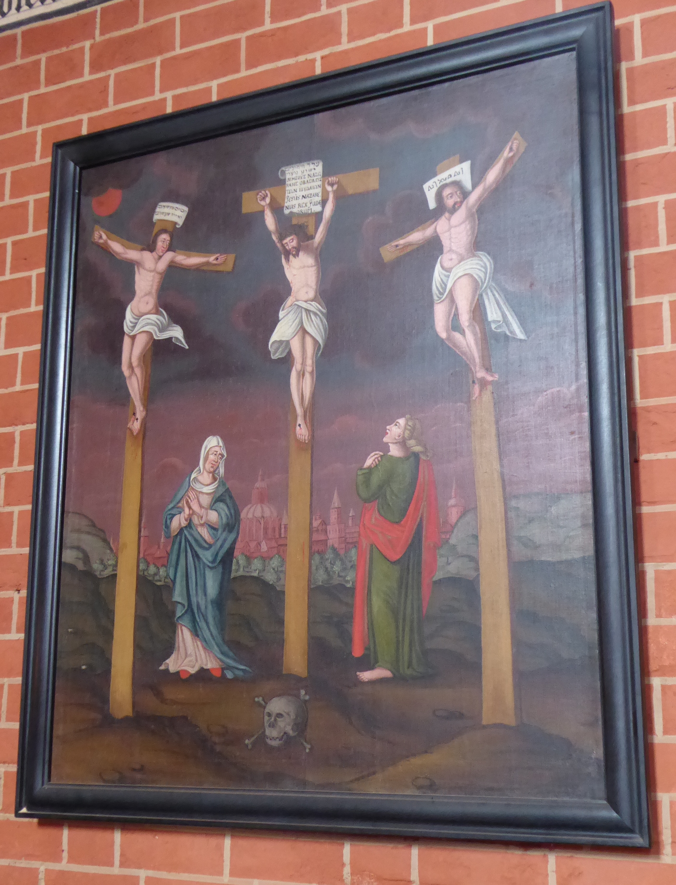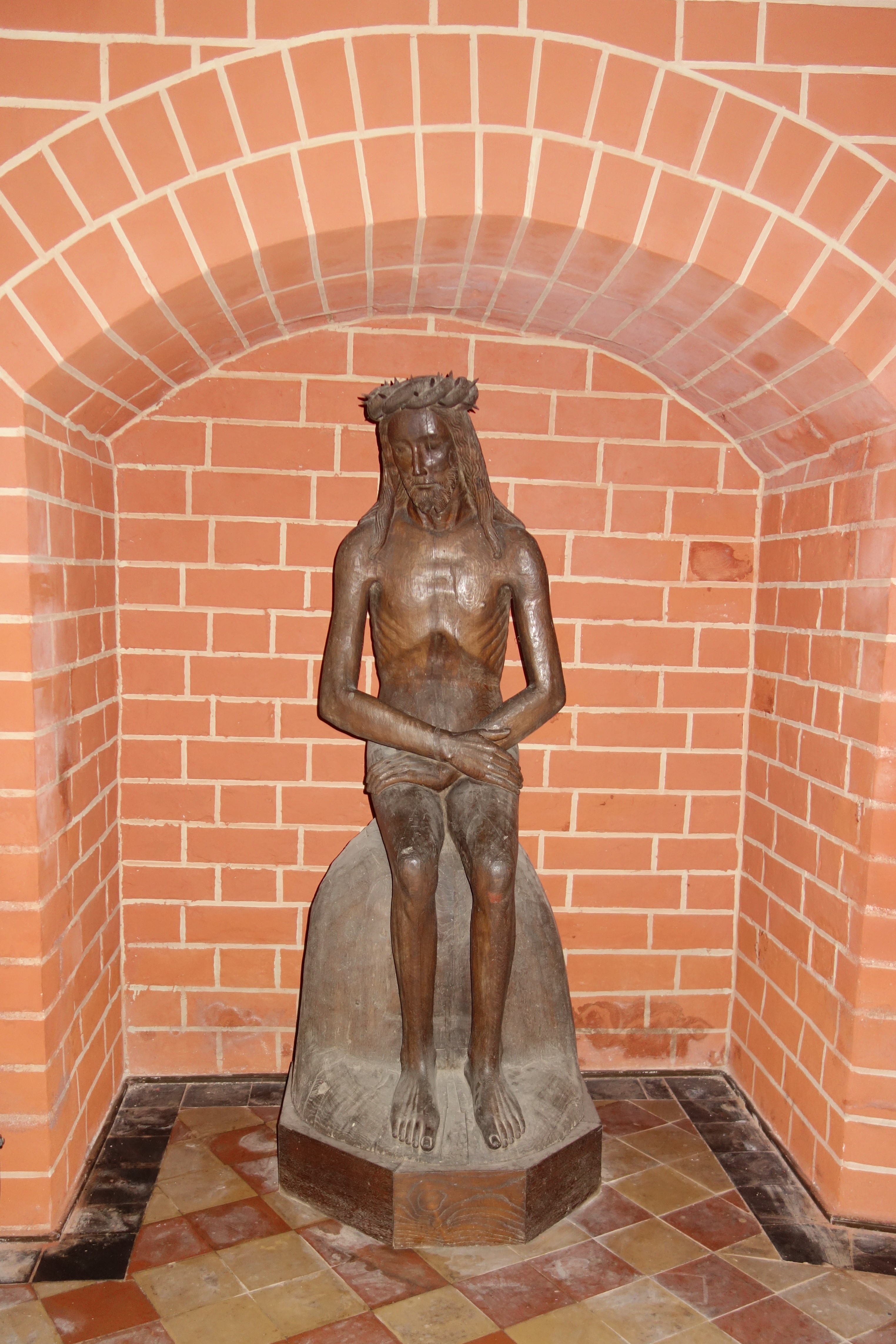 Im 17. Jahrhundert wurden für das Retabel des früheren Hauptaltars, das jetzt im Chorumgang aufgestellt ist, Gemälde mit Passionsszenen gefertigt. Diese wurden später wieder getrennt und an der nördlichen Langhauswand aufgehängt. Der Altaraufsatz mit geschnitzten Heiligenfiguren aus mittelalterlicher Zeit erhielt im 19. Jahrhundert eine gemalte Abbildung des Emmausmahls. Ein hölzernes Kruzifix bekrönt den Mittelschrein. Eine Triumphkreuzgruppe und ein Christus als Schmerzensmann, beides mittelalterliche Schnitzarbeiten, setzen diese Reihe fort.