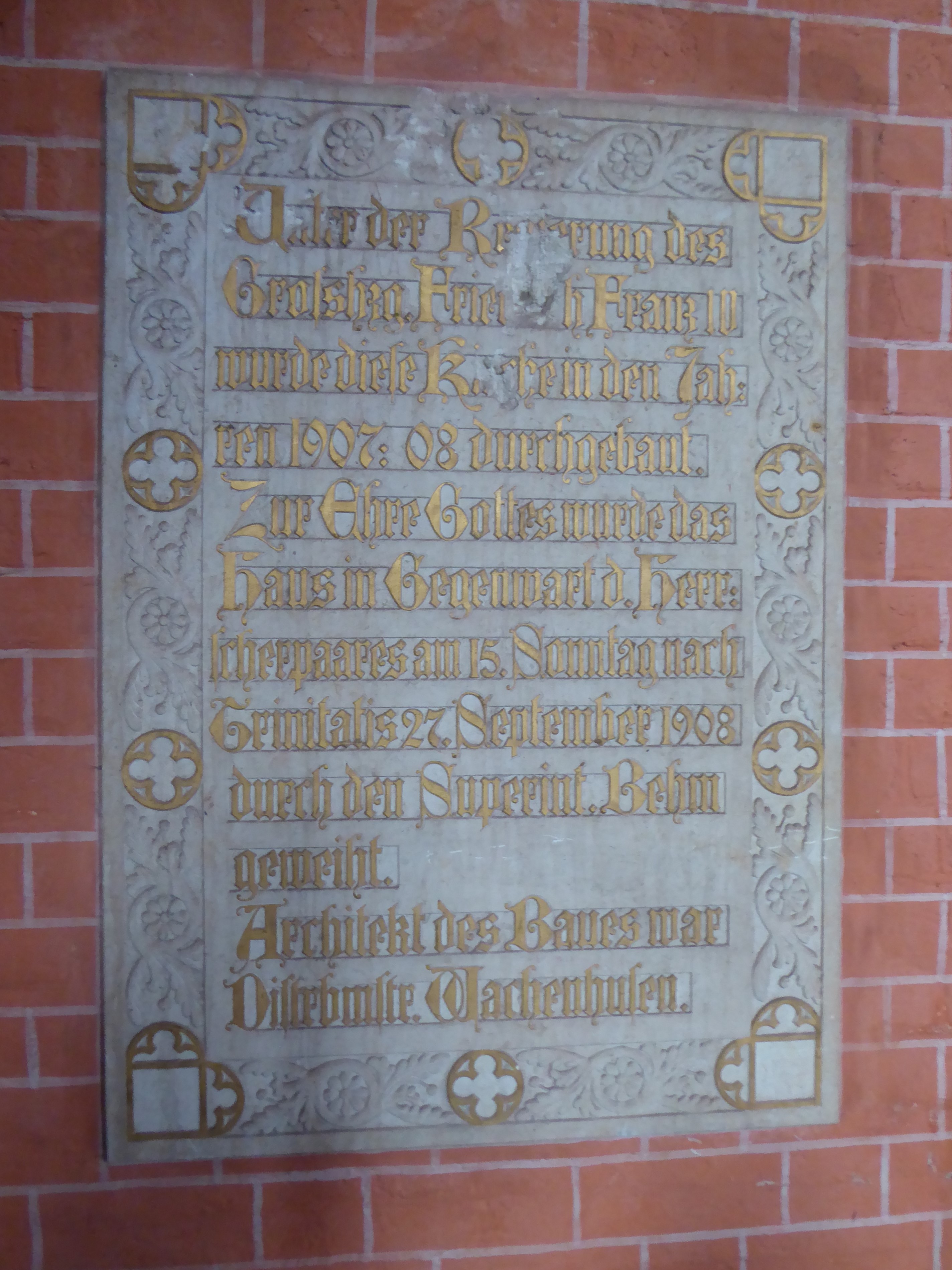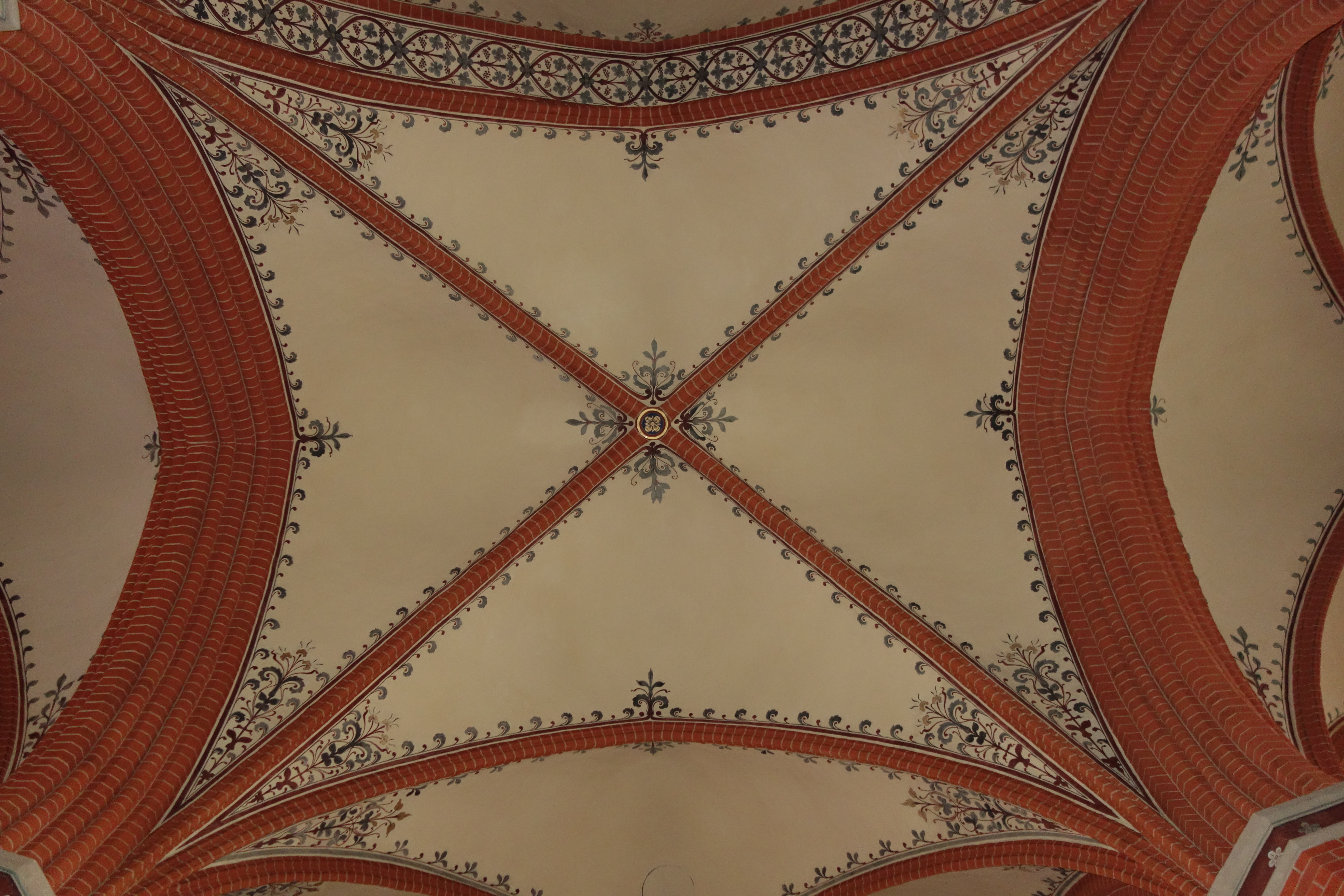 Ein Dreieck mit dem Auge Gottes im Mittelpunkt eines Kleeblattkreuzes, umgeben von einem Strahlenkranz – die Symbole für die Dreifaltigkeit und die Allgegenwart Gottes sind das zentrale Motiv der Gewölbemalerei im Chor der St. Marienkirche in Parchim. Die Ausmalung entstand im Zuge einer Neuaufrichtung des Chors Anfang des 20. Jahrhunderts.