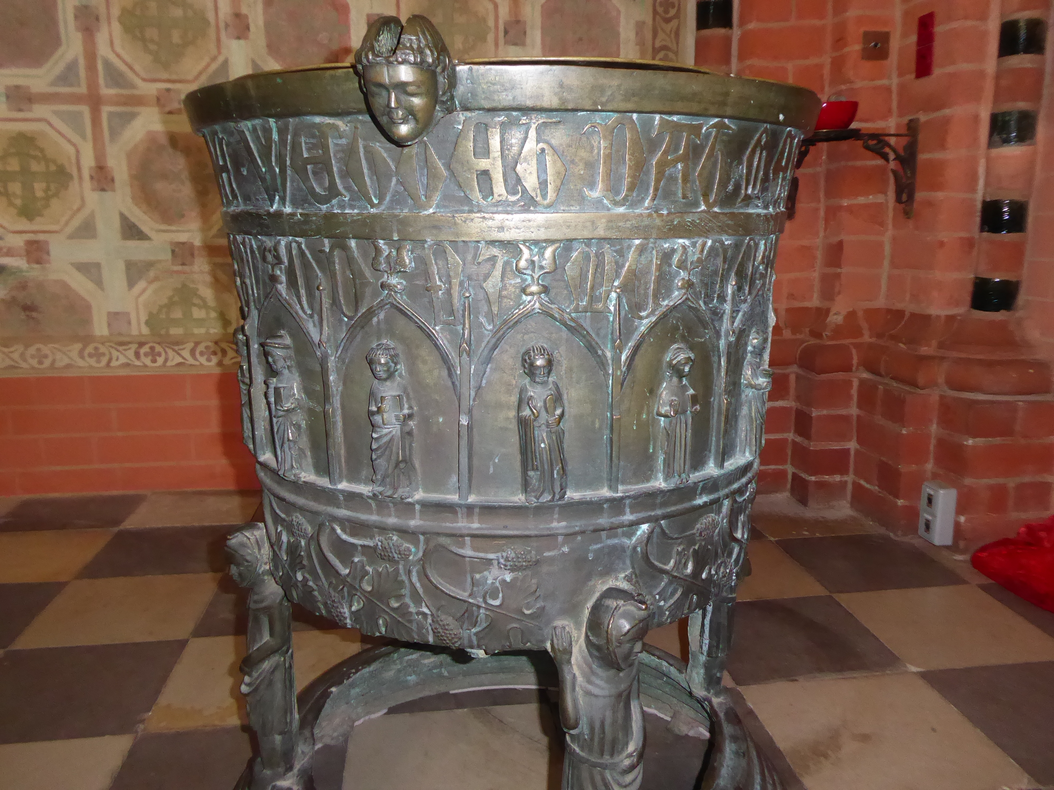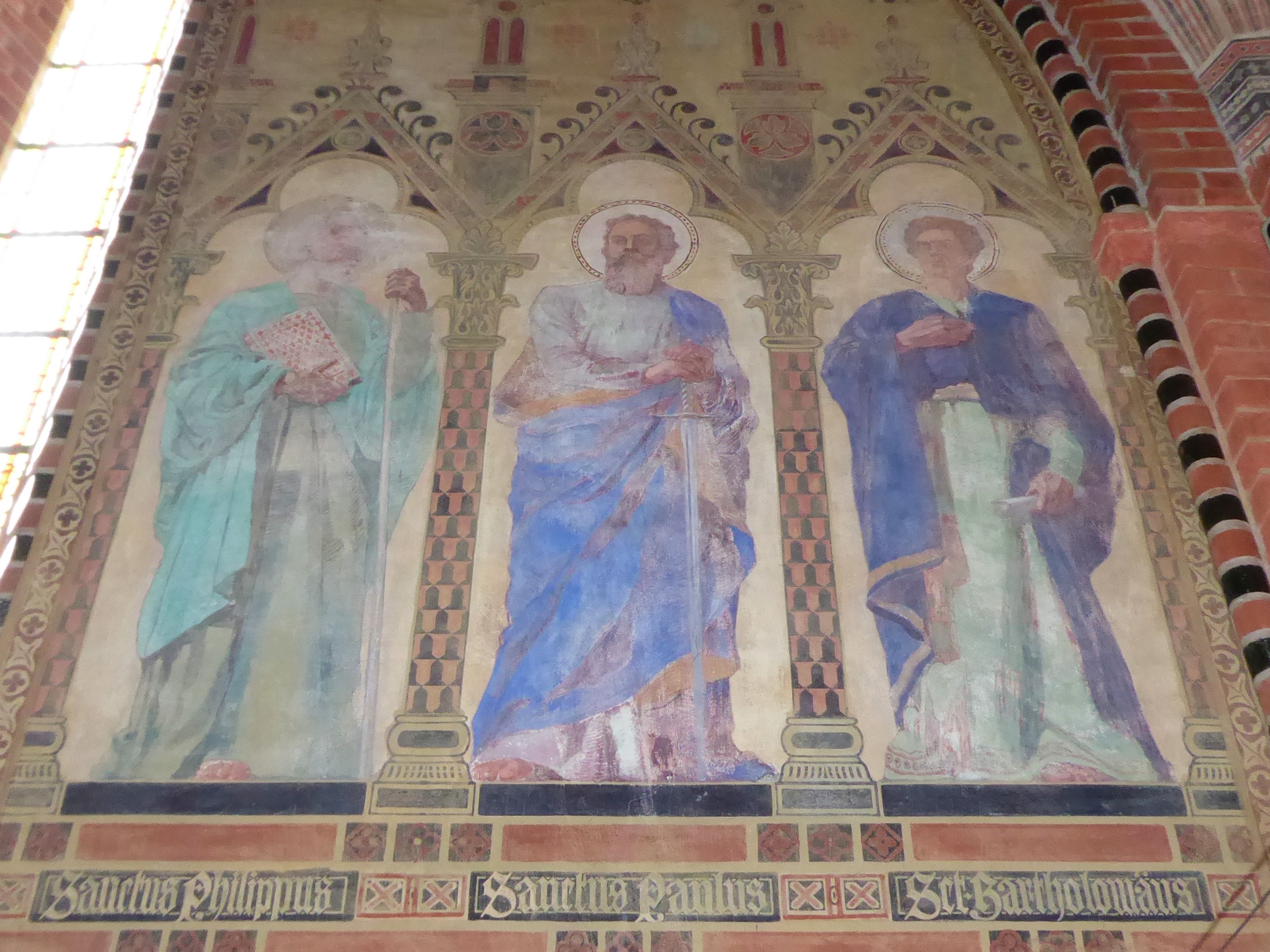 Eine wichtige Rolle in der illustrierten Glaubenswelt der Marienkirche spielen die 12 Apostel. Über die Jahrhunderte hinweg sind die Jünger Jesu, die beispielhaft für die Nachfolge Christi stehen, in der Kirche abgebildet worden. Als überlebensgroße Wandmalereien aus der Zeit der Renovierung Anfang des 20. Jahrhunderts blicken sie von den Seitenwänden des Chors in den Altarraum herab. Die bronzene Tauffünte aus dem Jahr 1365 zeigt unter einer Inschrift, die auf den Gießer hinweist, Reliefs der Apostel und Jesus als Weltenrichter.