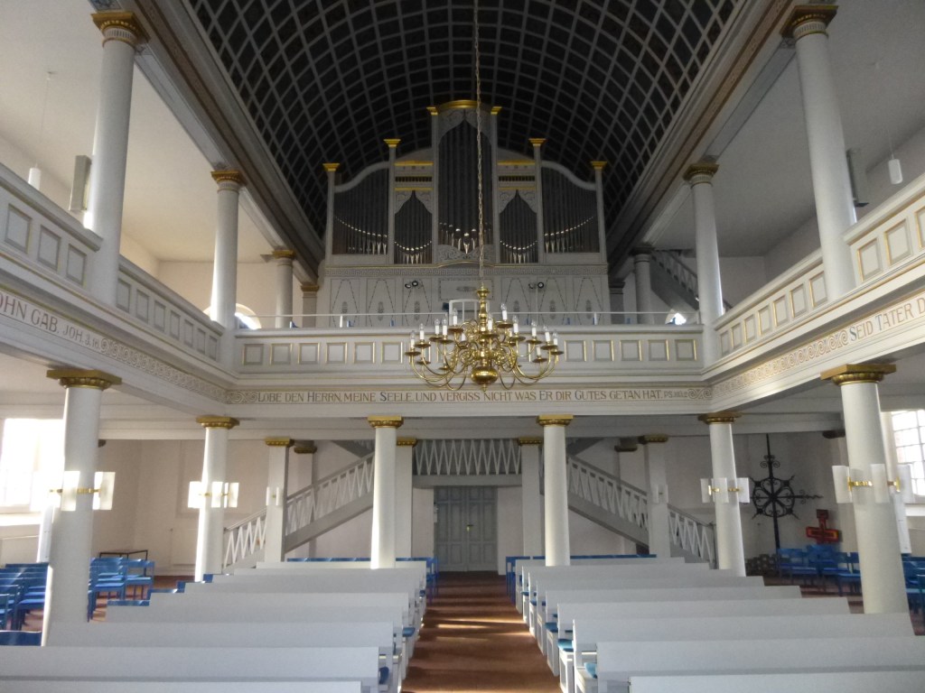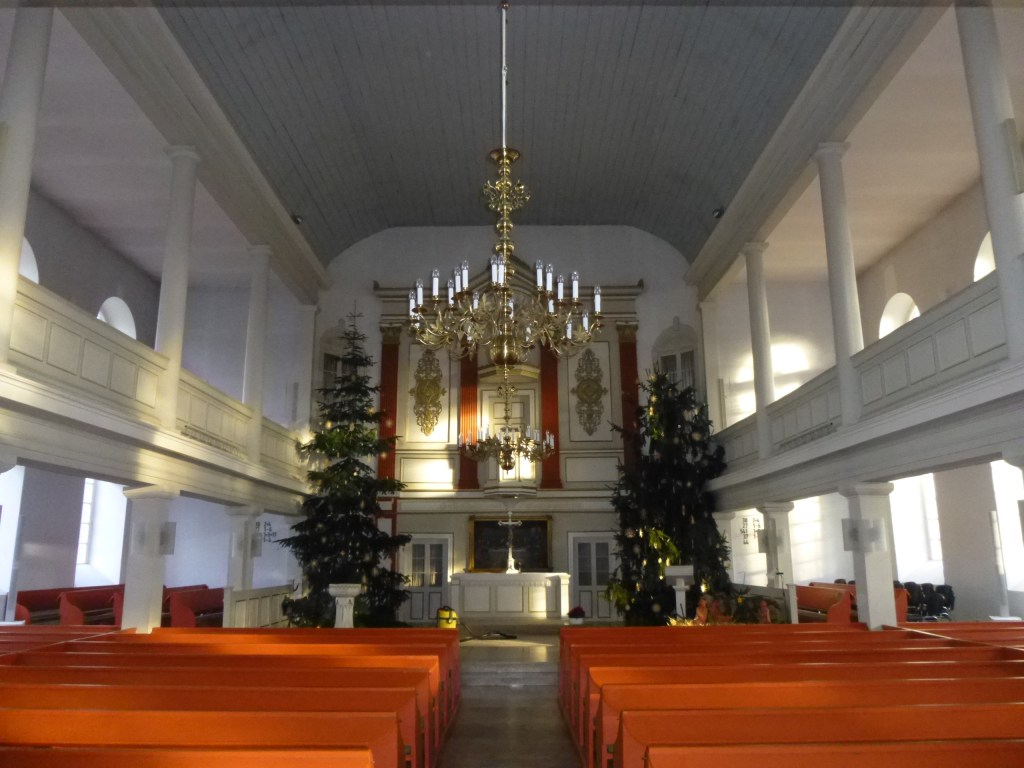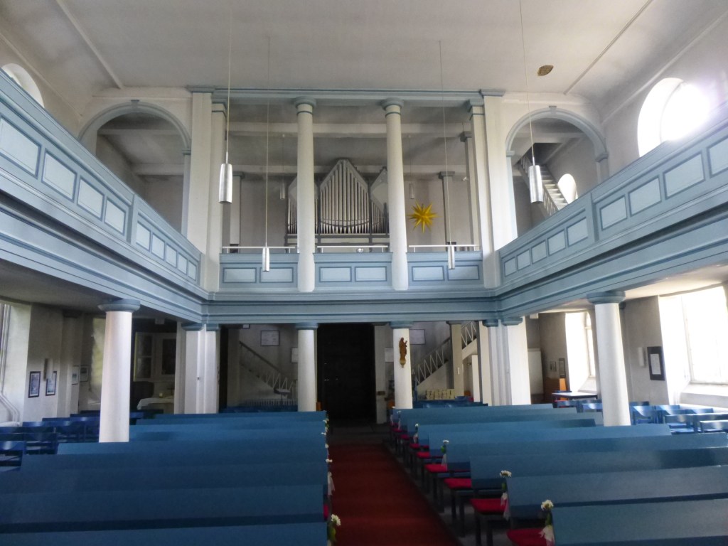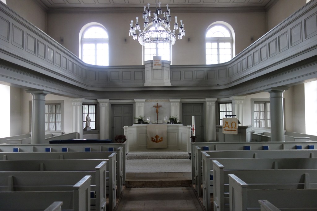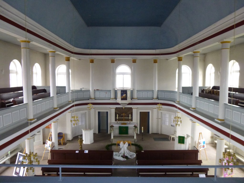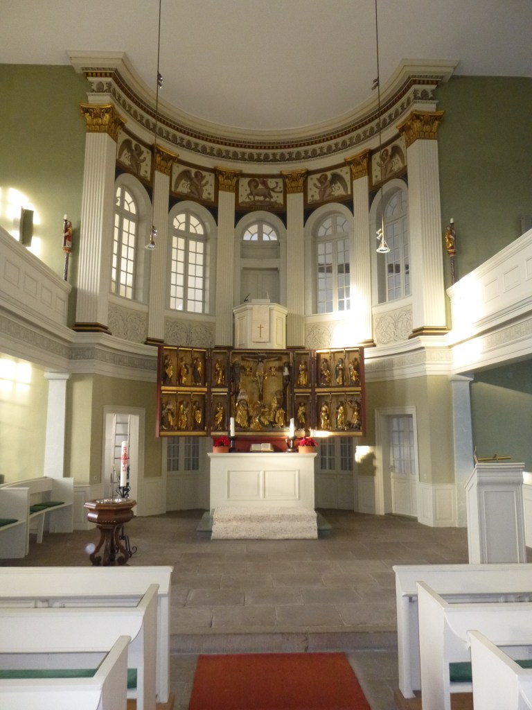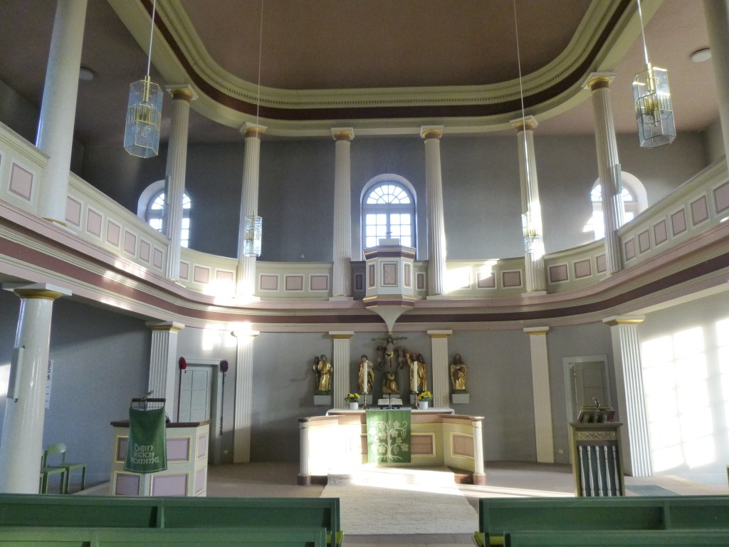 Typische Gestaltungsmerkmale im Inneren sind die Säulenarchitektur und die unterschiedlich ausgebildeten Kanzelaltarwände. Der Altar der Kirche in Rätzlingen stellt mit seinem erhaltenen mittelalterlichen Retabel eine Besonderheit dar.