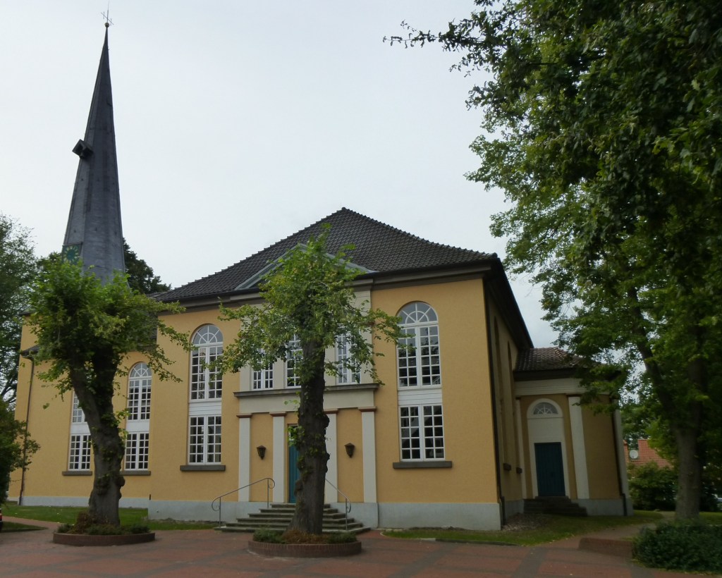 Der auf T-förmigem Grundriss errichtete Neubau in Kirchdorf im Kreis Diepholz wurde für 1200 Gottesdienstbesucher konzipiert. Das Angebot an Sitzplätzen für die große Gemeinde wurde – ein Charakteristikum für Hellners Kirchen – durch eine „flächendeckende“ Ausstattung mit Sitzbänken und eine weitläufige Emporenanlage ermöglicht.